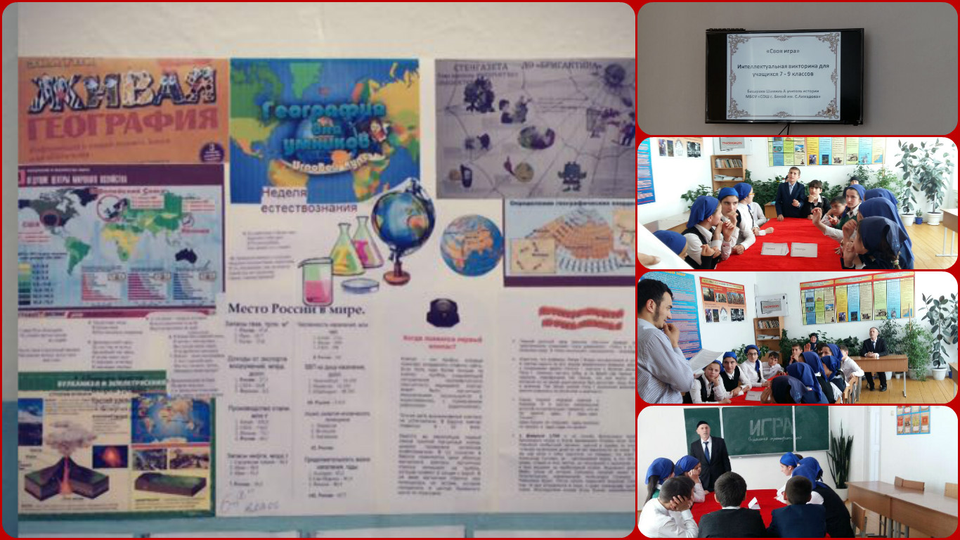 07.04.2016В рамках проведения предметной недели естественно-гуманитарного цикла в МБОУ "СОШ с.Беной им.С.А.Ахмадова" учителем истории Бацараевым Ш.А. проведена "Своя игра", с участием учащихся 6-7 классов.
